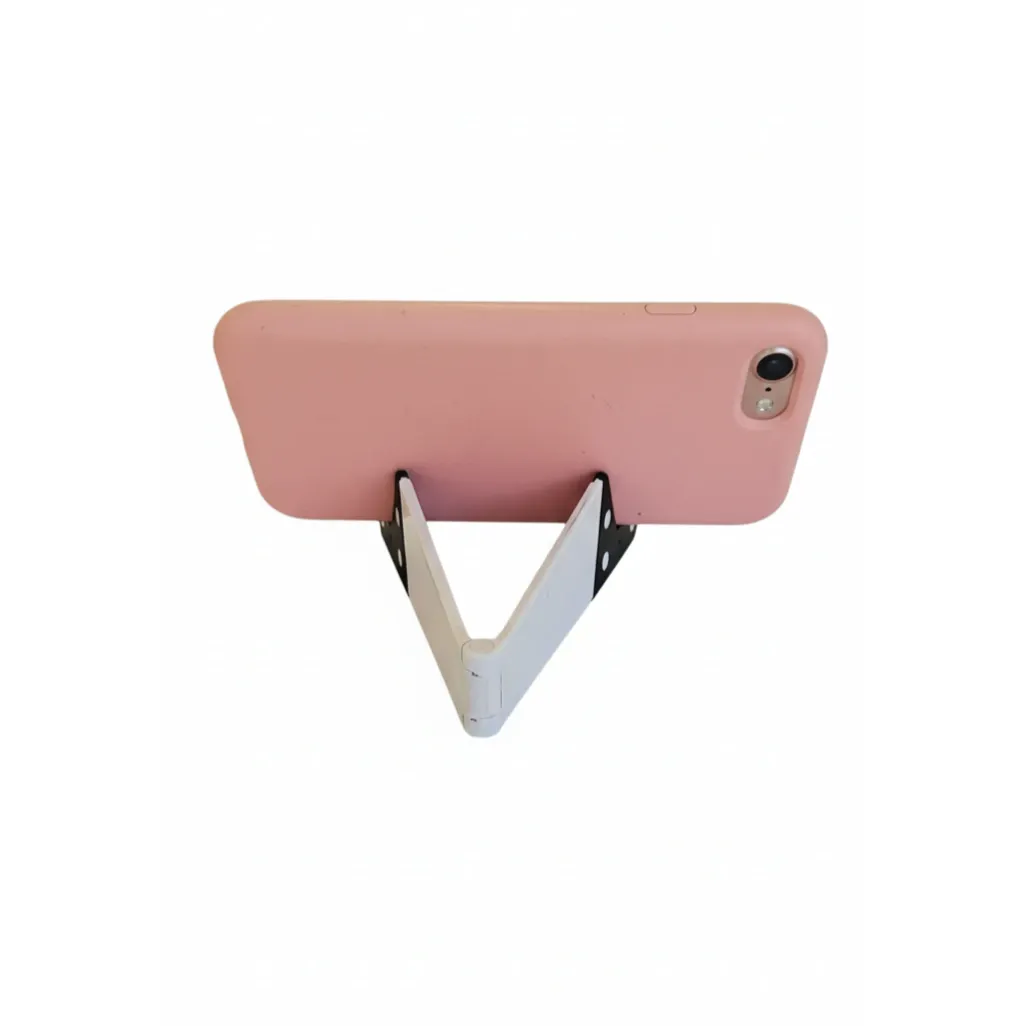 Soporte portátil en V para celular y tablet, liviano, plegable y antideslizante. Compatible con la mayoría de dispositivos hasta 10 mm de grosor. Ideal para viajes, oficina y hogar.