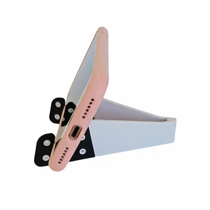 Fabricado en plástico de ingeniería PP + TPE, combina firmeza con un acabado antideslizante y suave que protege tus dispositivos. Su diseño triangular asegura estabilidad y evita movimientos indeseados.